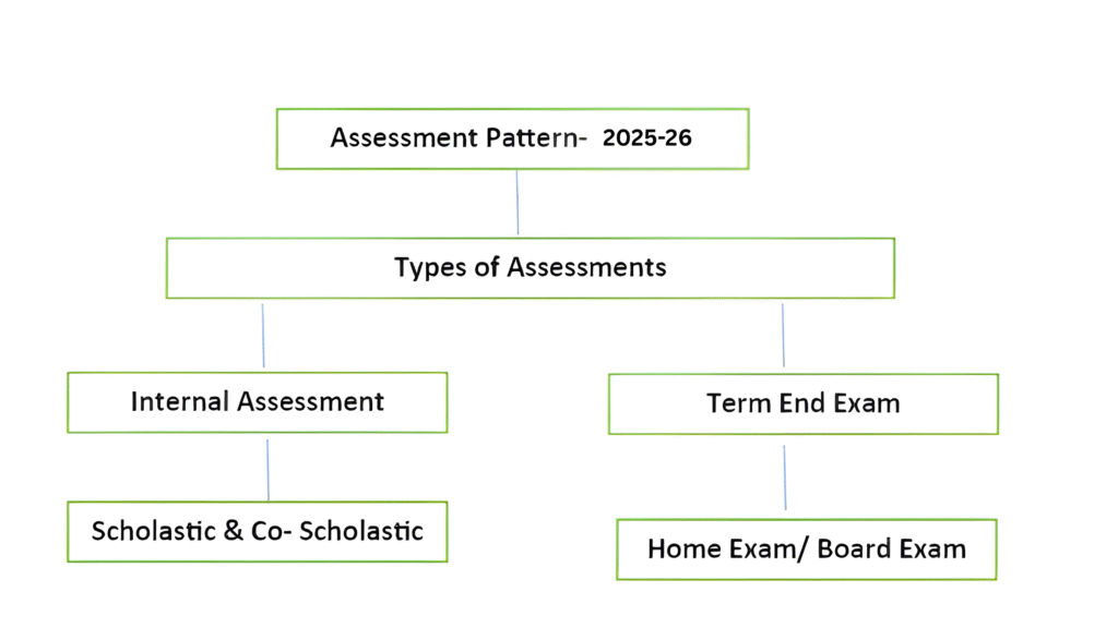 The Assessment Pattern for 2025–26 at The Global School of Excellence is designed to ensure balanced evaluation through different methods. It includes two main types of assessments — Internal Assessment and Term End Examination. The Internal Assessment covers both Scholastic and Co-Scholastic areas to track overall progress throughout the year, while the Term End Exam evaluates academic understanding through Home or Board Examinations. This structure promotes continuous learning, practical understanding, and holistic student development.
